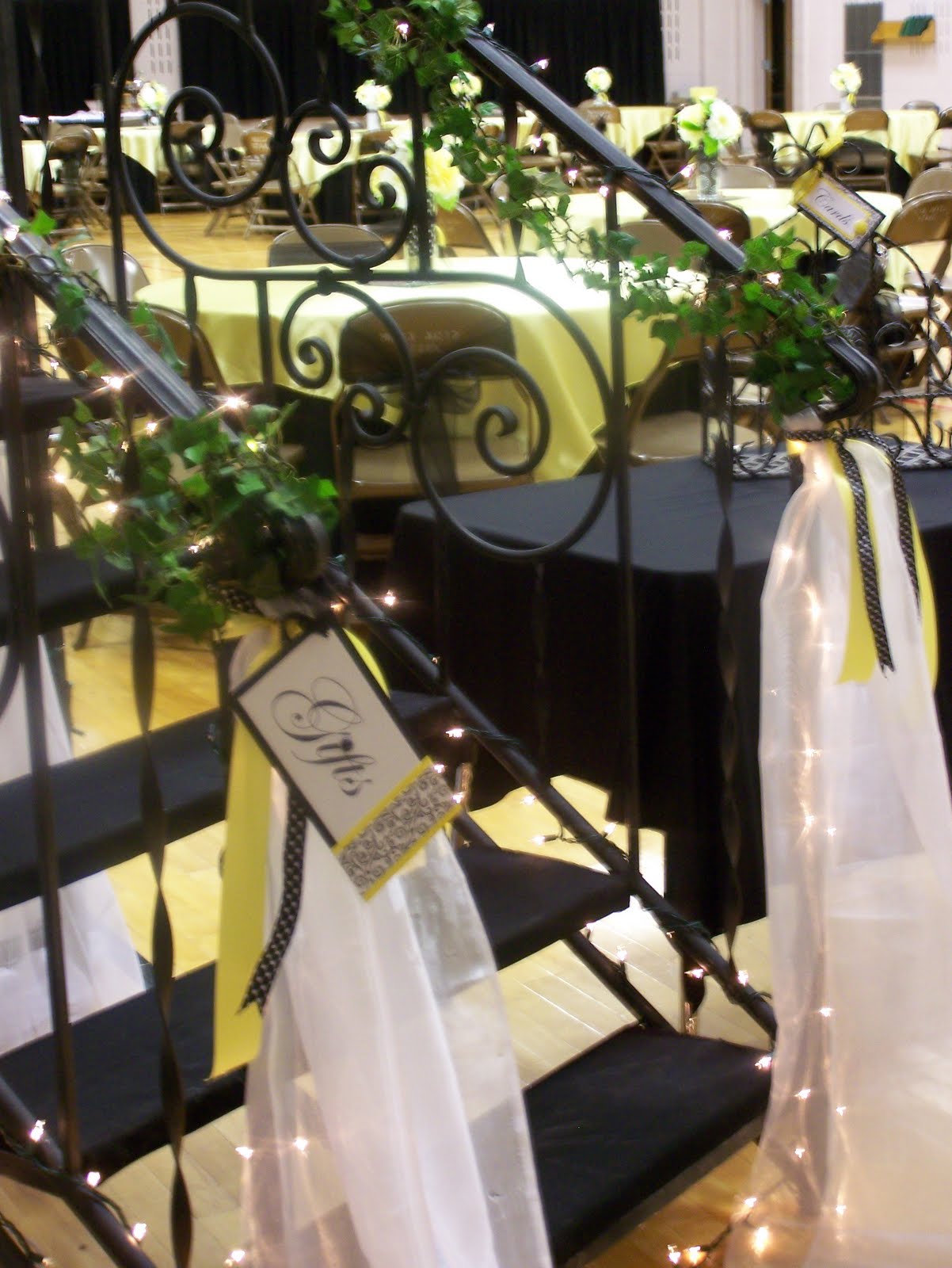 Look at this "dainty" piece. I think my husband hurt himself moving this thing, but it was worth it. Brandee's Aunt Brenda was the florist and also supplied the chairs with ties. She added so much to the final look and was a huge help.